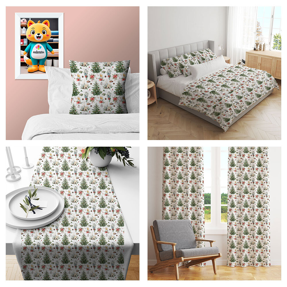 Dekoracyjna tkanina bawełniana z bożonarodzeniowym wzorem stworzy świąteczną radość w domu. Tkanina jest wykonana w 100% z najwyższej jakości bawełny, co zapewnia lekkość i gładkość oraz przyjemną w dotyku.