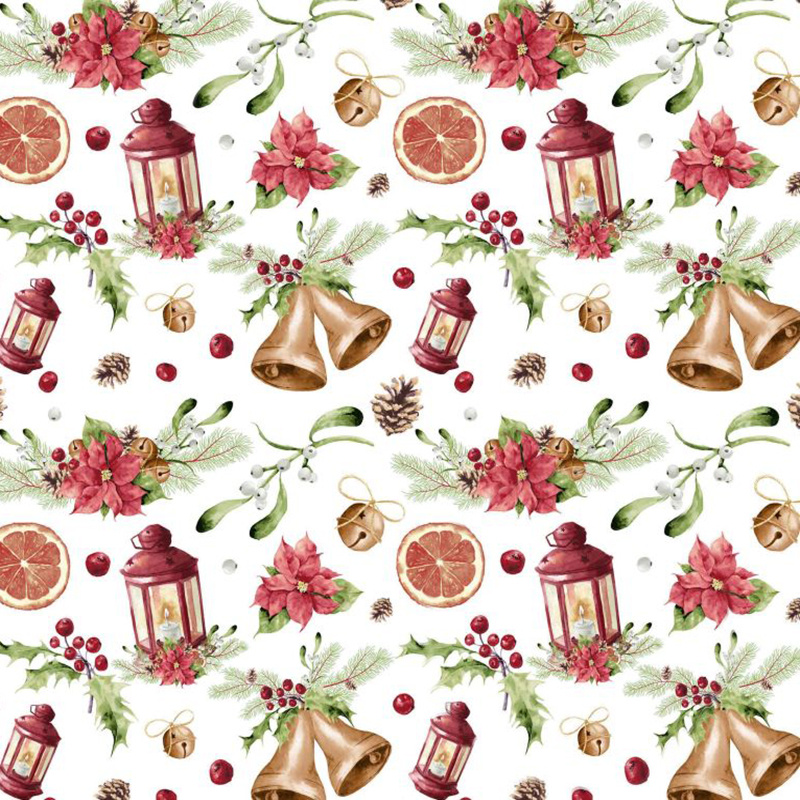 Tkanina bawełniana jest ozdobiona pięknym bożonarodzeniowym wzorem, który doda świątecznego czaru do każdego projektu. To świetny wybór na produkcję pościeli, obrusów, zasłon, dekoracji domu i innych ręcznie robionych przedmiotów.