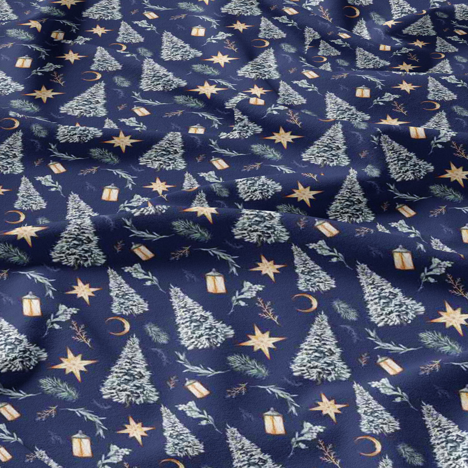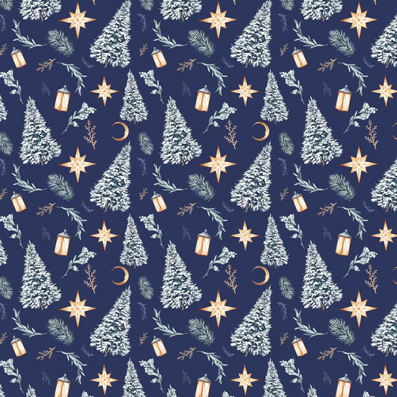Opis Świąteczna tkanina bawełniana wzór na granatowym tle