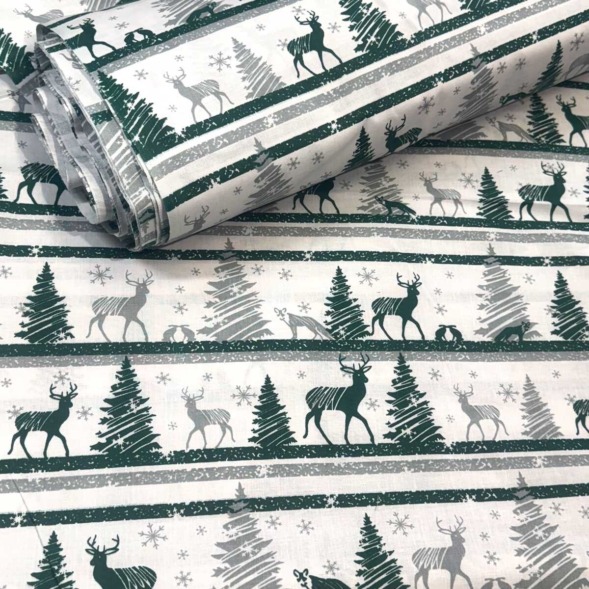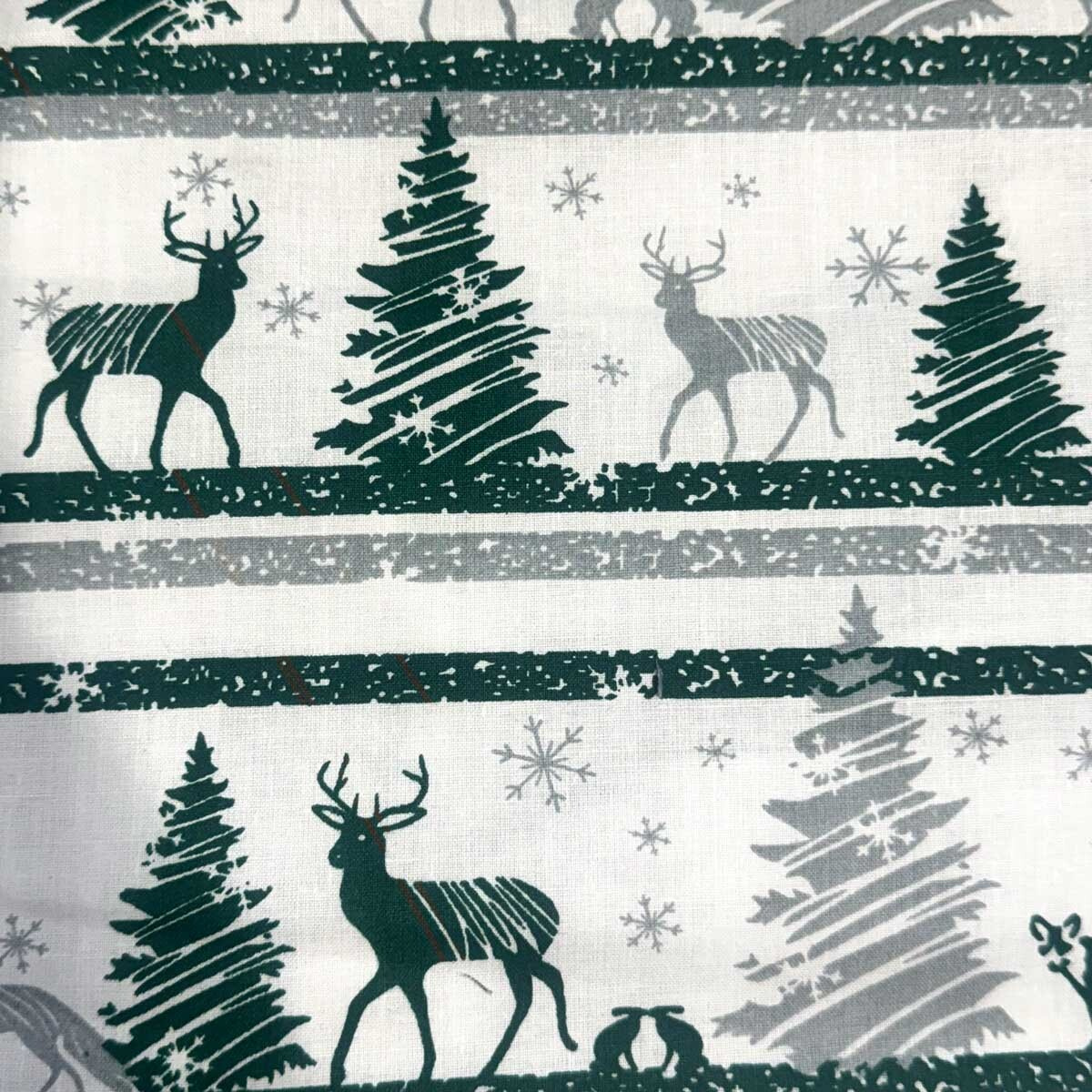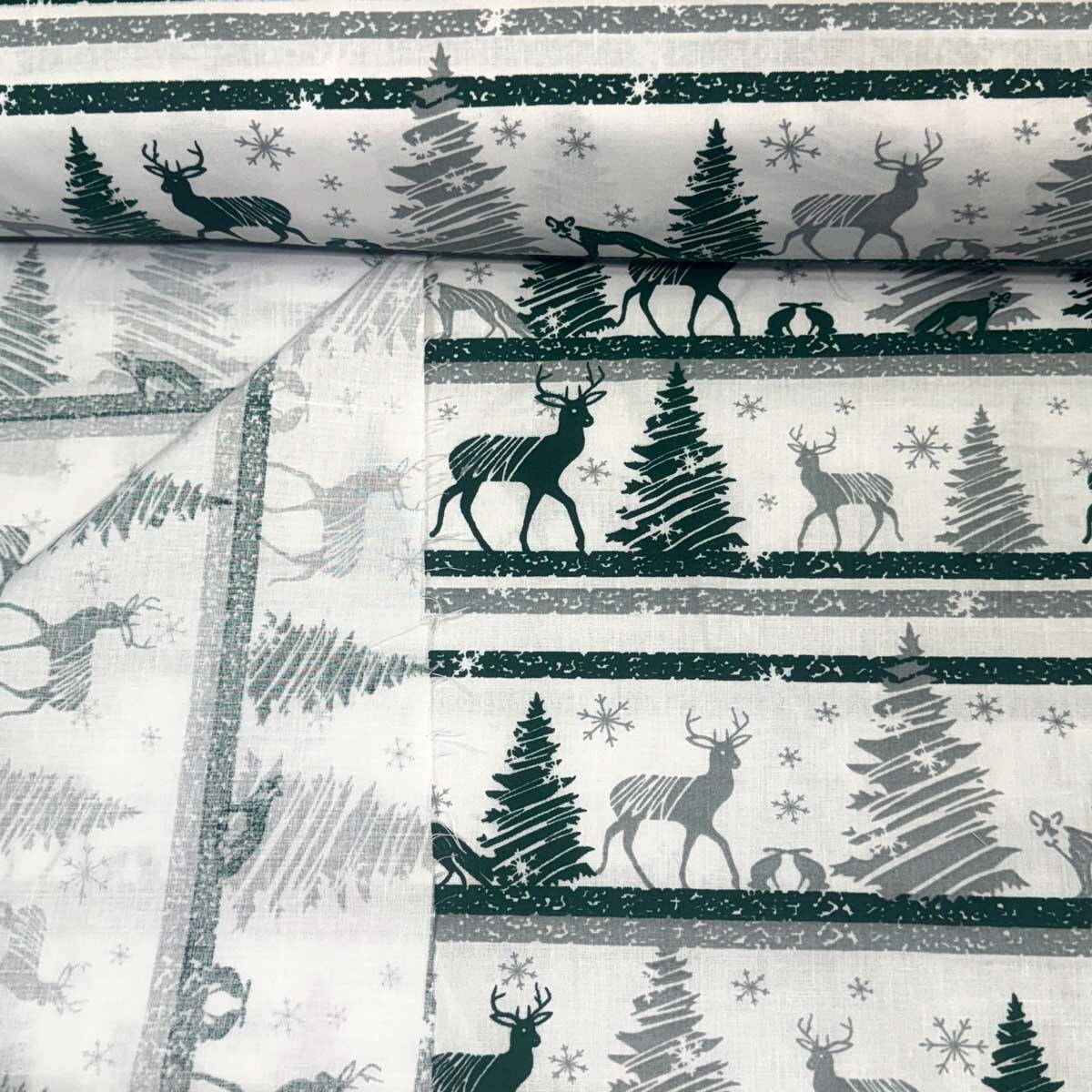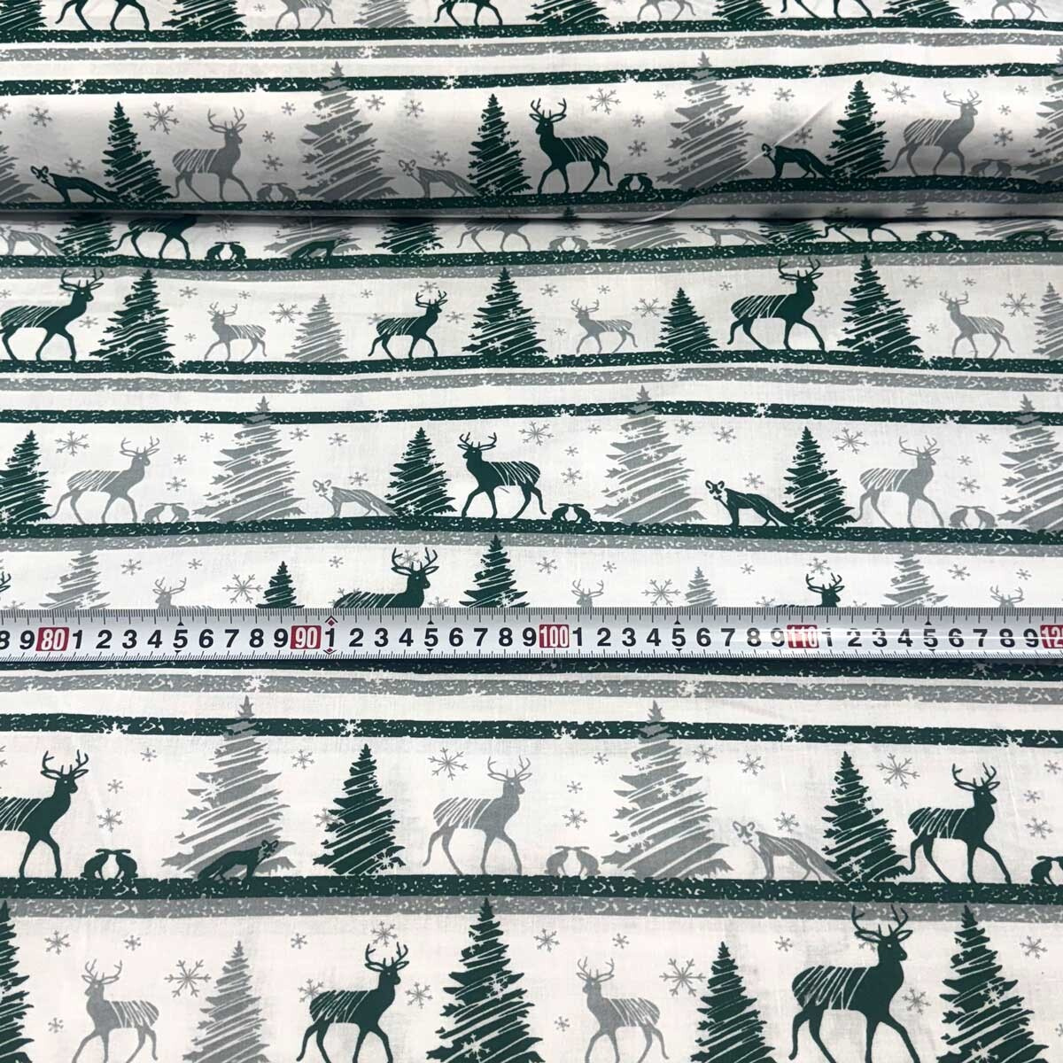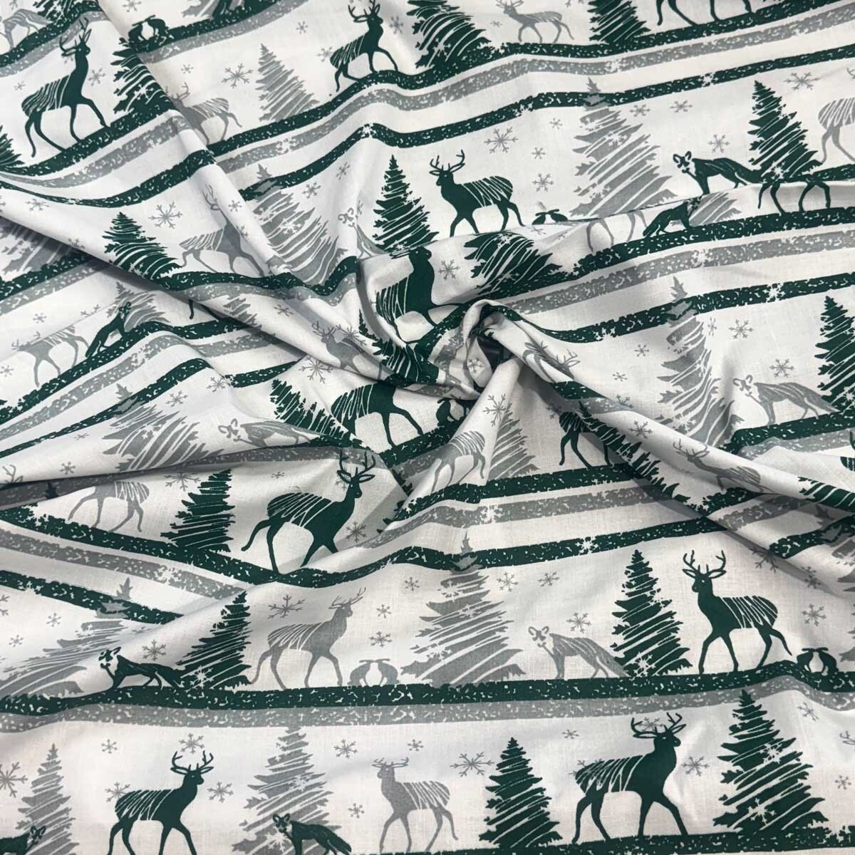 Świąteczna tkanina bawełniana wzór Skandinawski Zielony na białym tle