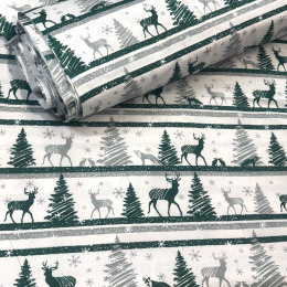 Opis Świąteczna tkanina bawełniana wzór Skandinawski Zielony na białym tle
