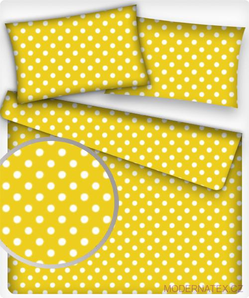 Tkanina bawełniana Białe groszki 10 mm na żółtym tle