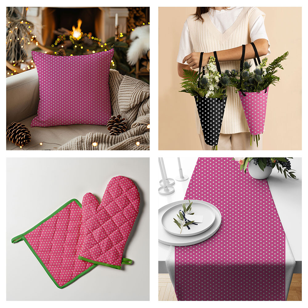 Opis Tkanina bawełniana białe groszki 3 mm na amarantowym tle