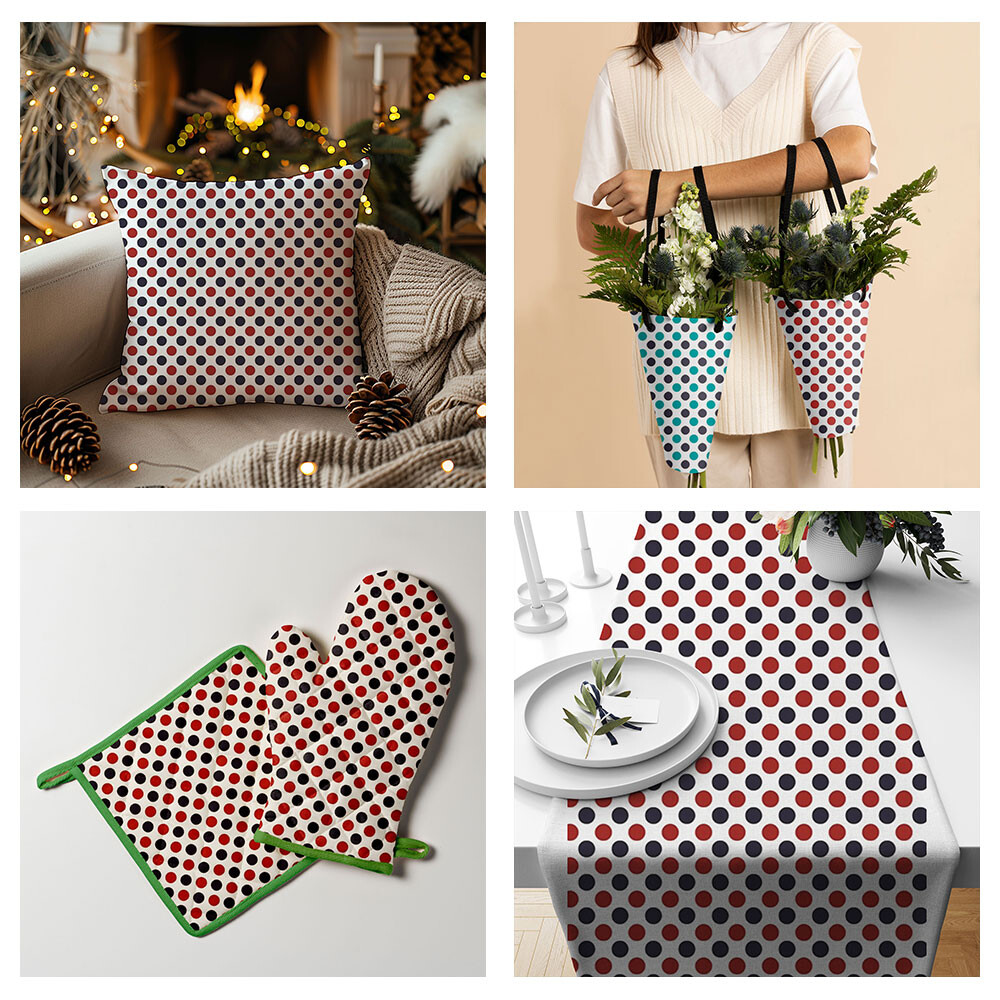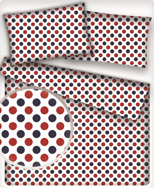 Opis Tkanina bawełniana granatowy czerwony groszek 22 mm na białym tle
