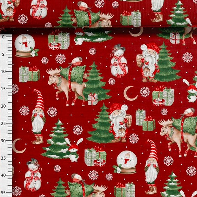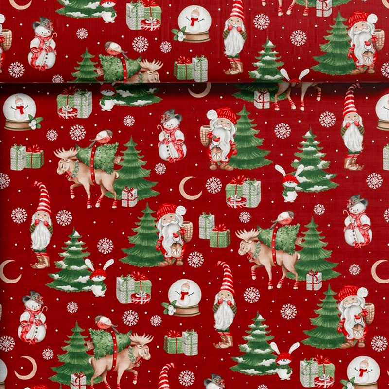 Dekoracyjna tkanina bawełniana z bożonarodzeniowym wzorem stworzy świąteczną radość w domu. Tkanina jest wykonana w 100% z najwyższej jakości bawełny, co zapewnia lekkość i gładkość oraz przyjemną w dotyku.