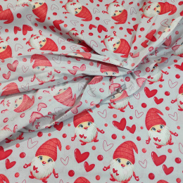 Opis Tkanina bawełniana świąteczna Zakochane Mikołaje na szarym tle