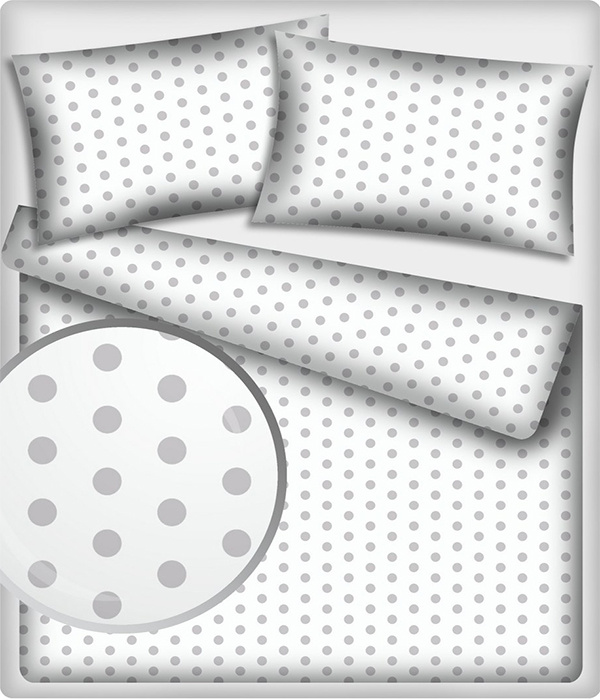 Tkanina bawełniana Szare groszki 22 mm na białym tle