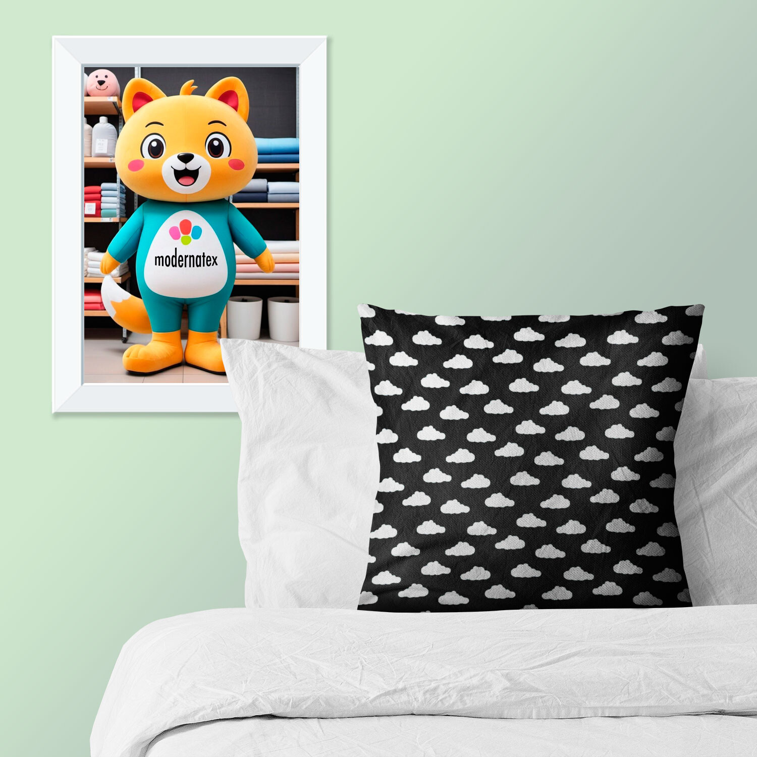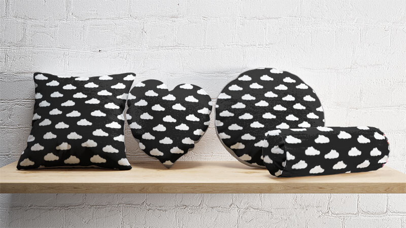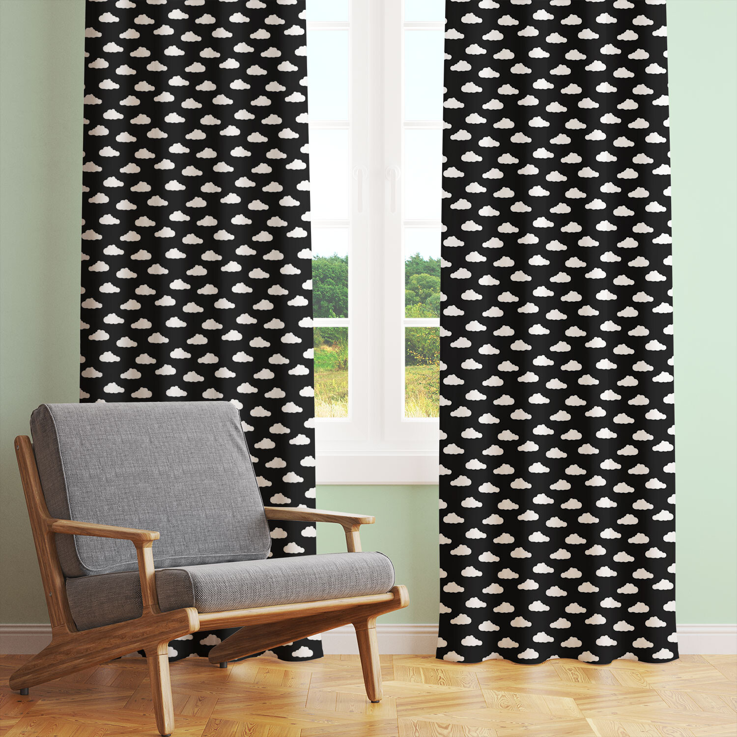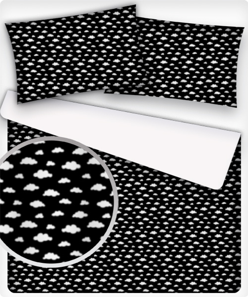 Opis Tkanina bawełniana wzór białe mini chmury na czarnym tle