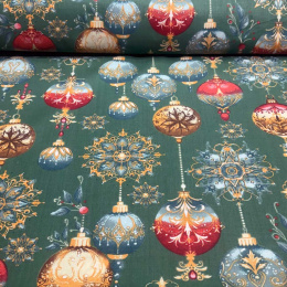 Tkanina bawełniana wzór Bombki na zielonym tle