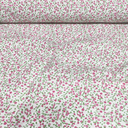 Opis Tkanina bawełniana wzór czerwono-szare kwiaty na białym tle