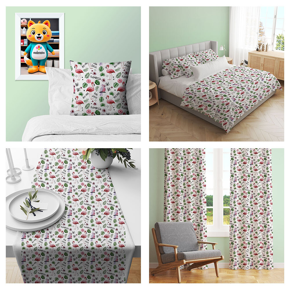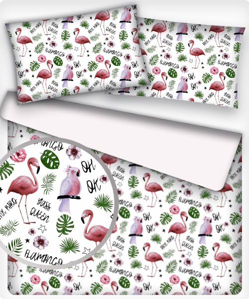 Opis Tkanina bawełniana wzór Flamingi Queen na białym tle