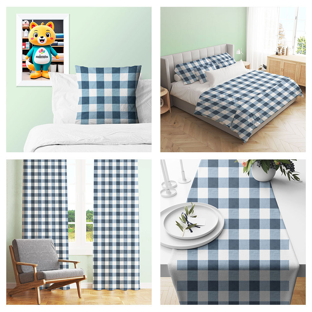Opis Tkanina bawełniana wzór kostka niebieska 8 cm