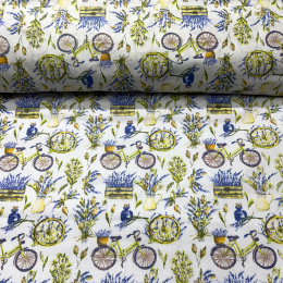 Tkanina bawełniana wzór Kwiatów i Rower na białym tle