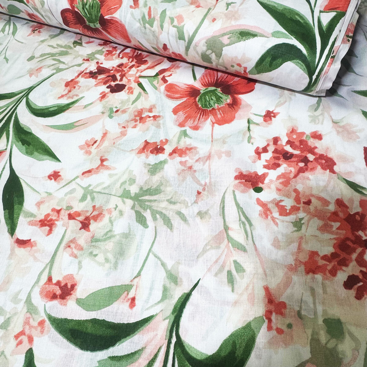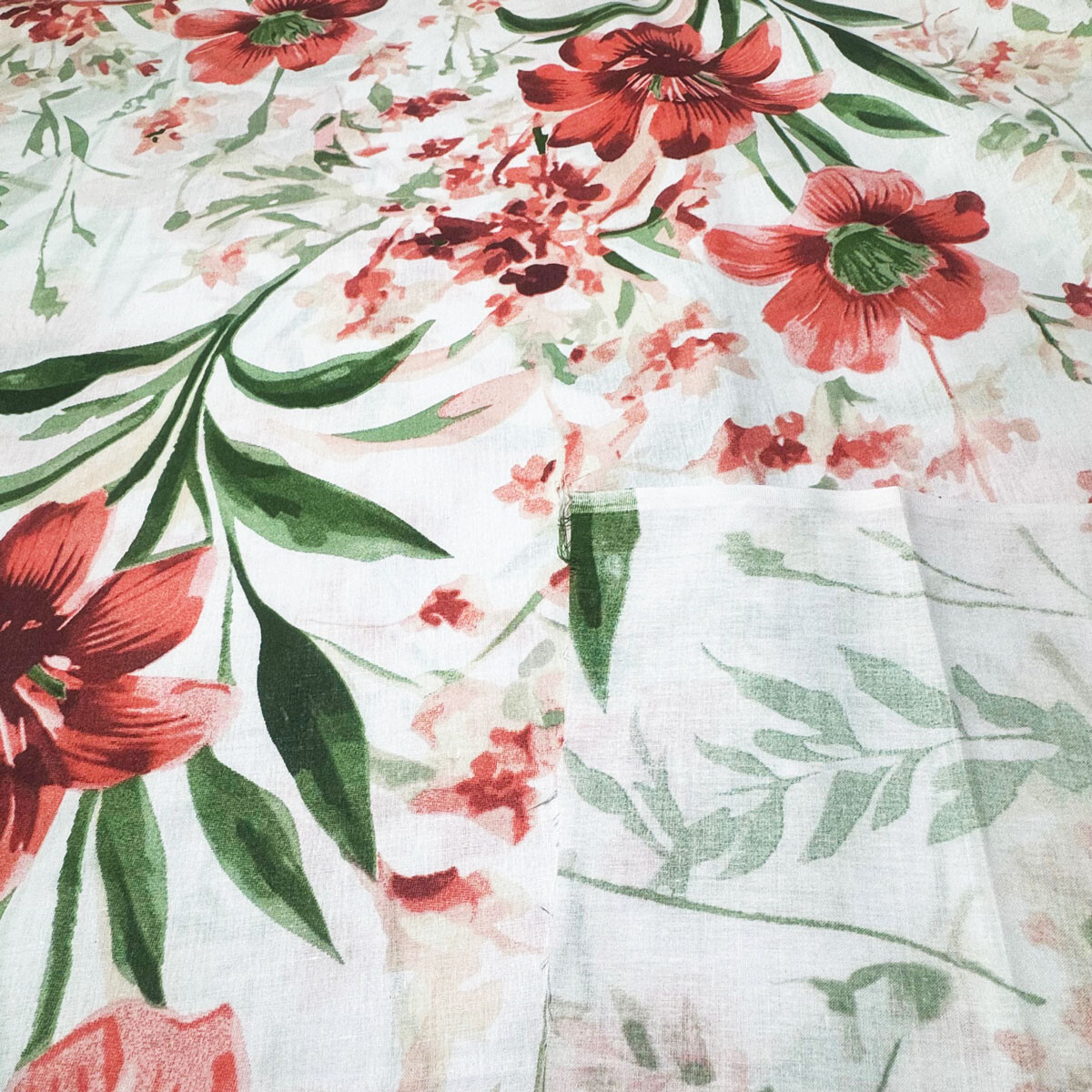 Opis Tkanina bawełniana wzór Kwiaty na Białym