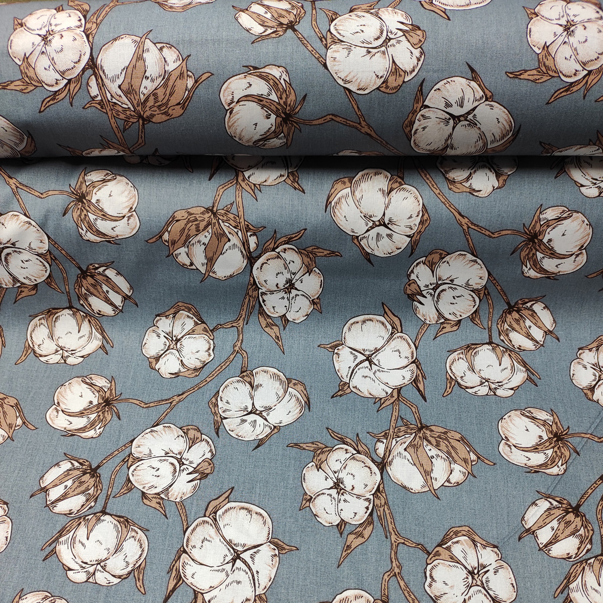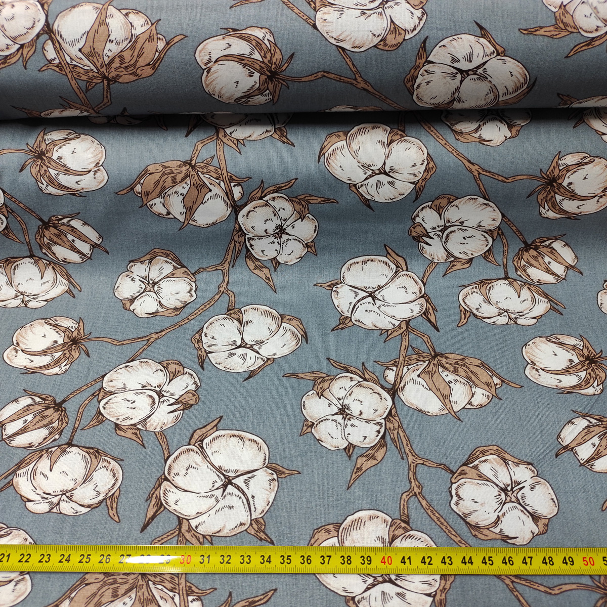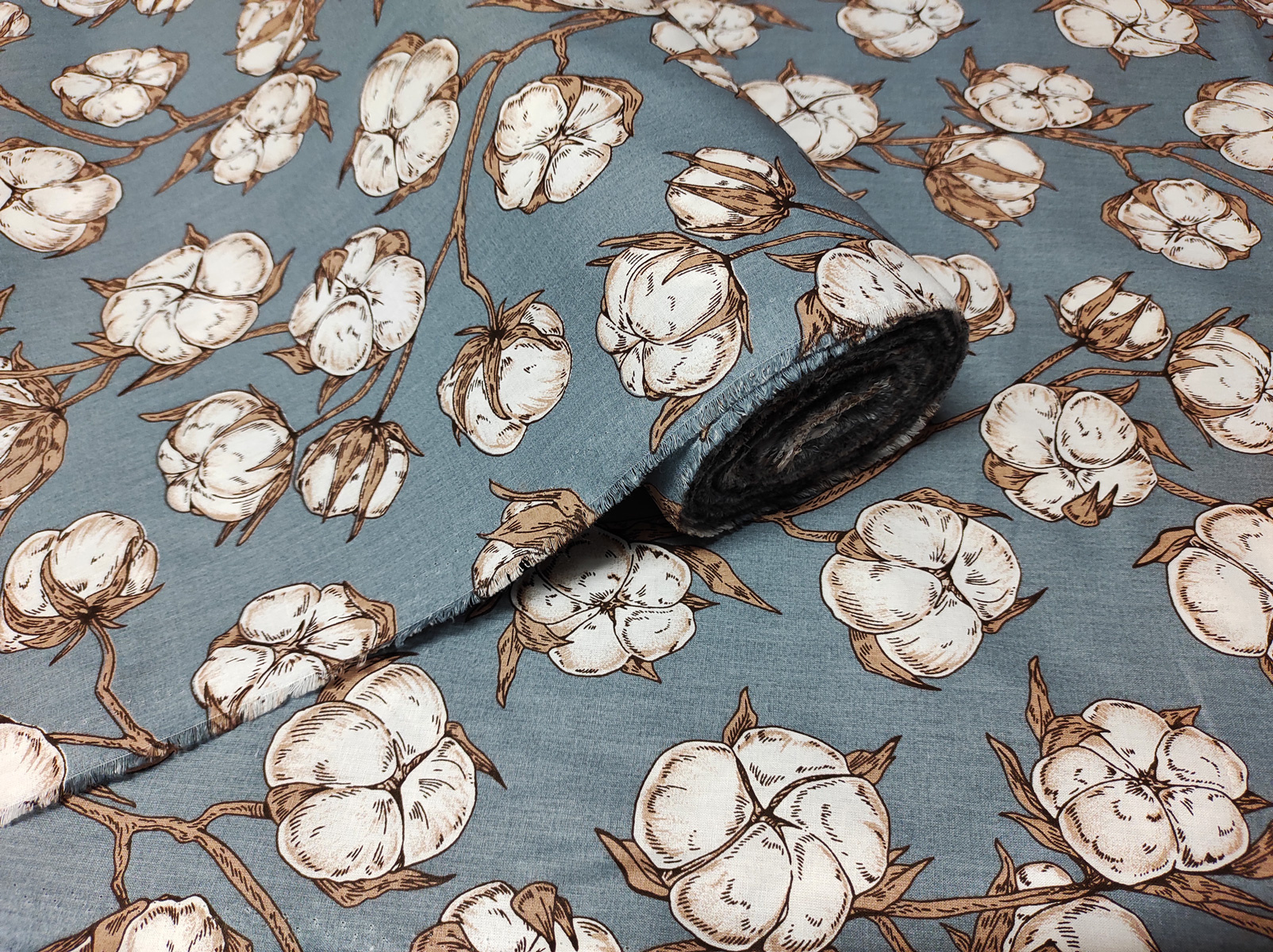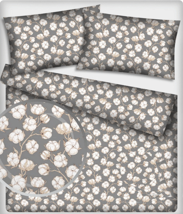 Opis Tkanina bawełniana wzór Kwiaty na szarym tle