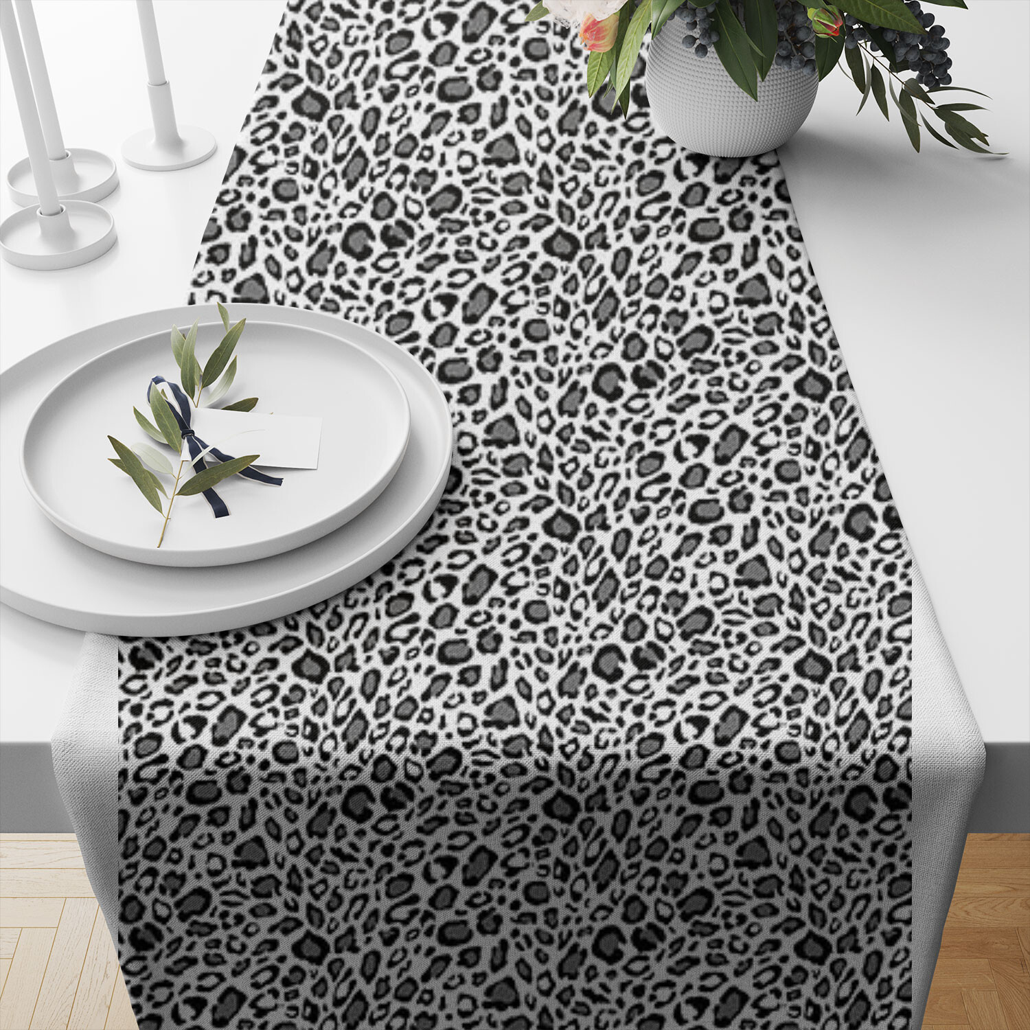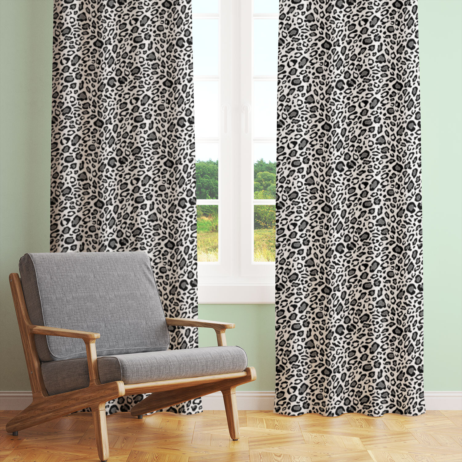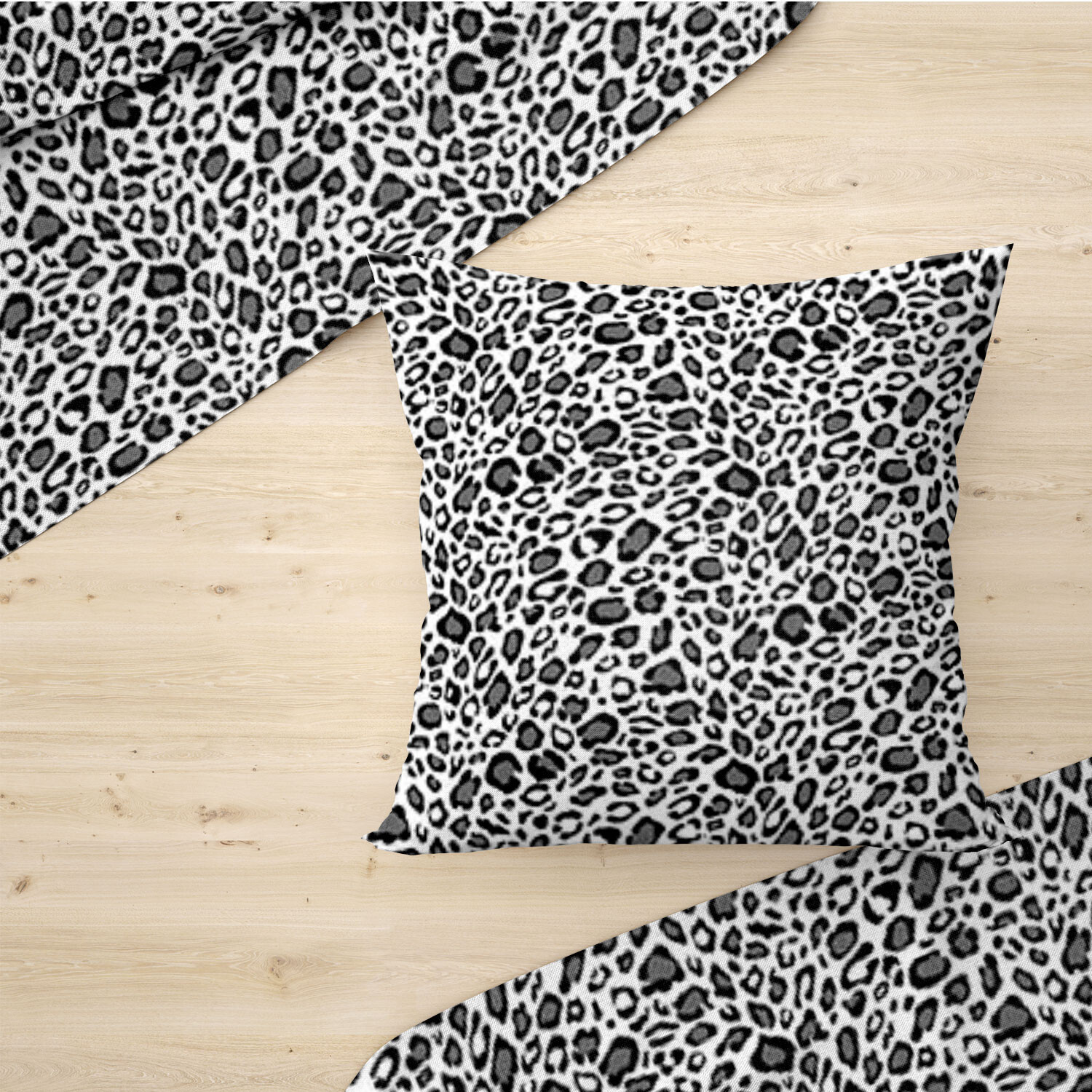 Opis Tkanina bawełniana wzór Lampart szary