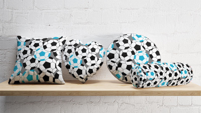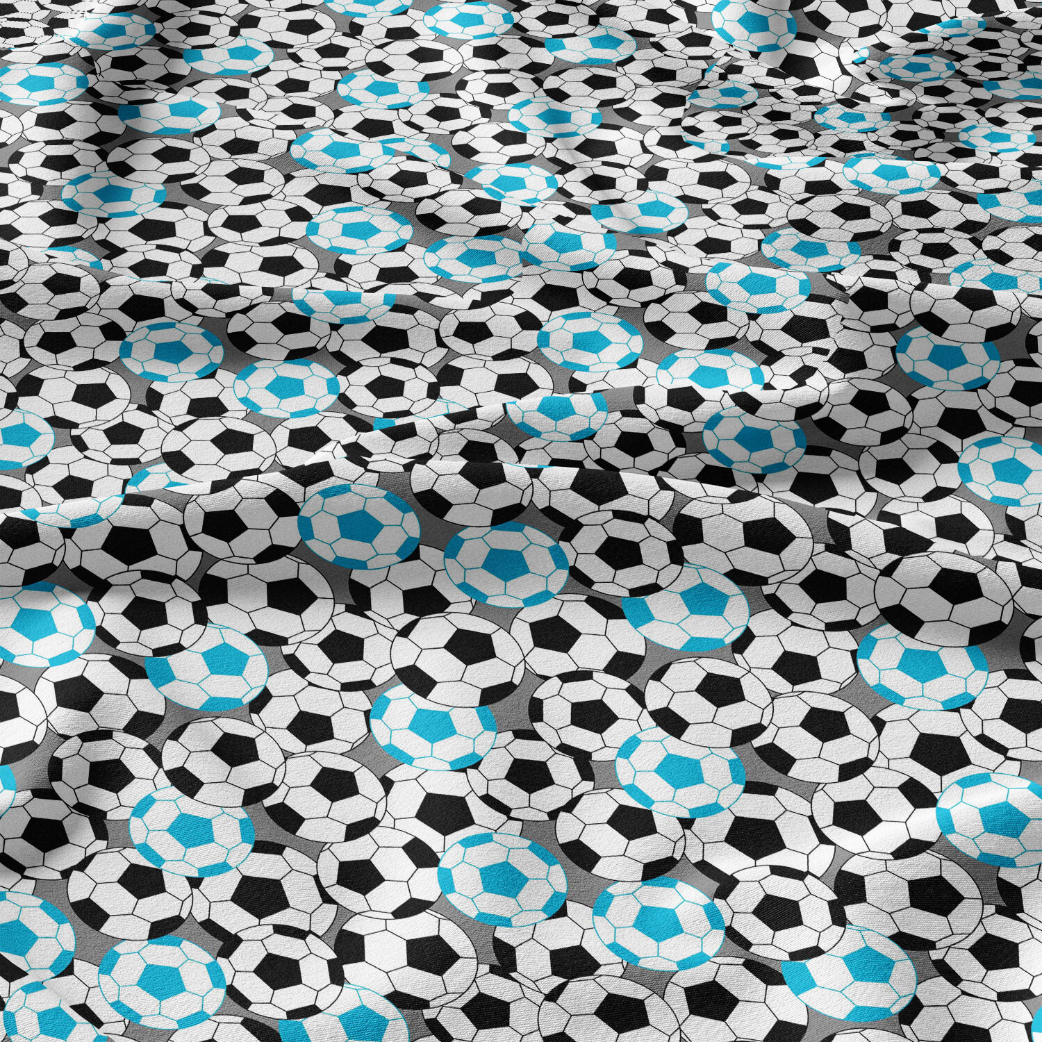 Opis Tkanina bawełniana wzór niebieskie piłki piłkarskie