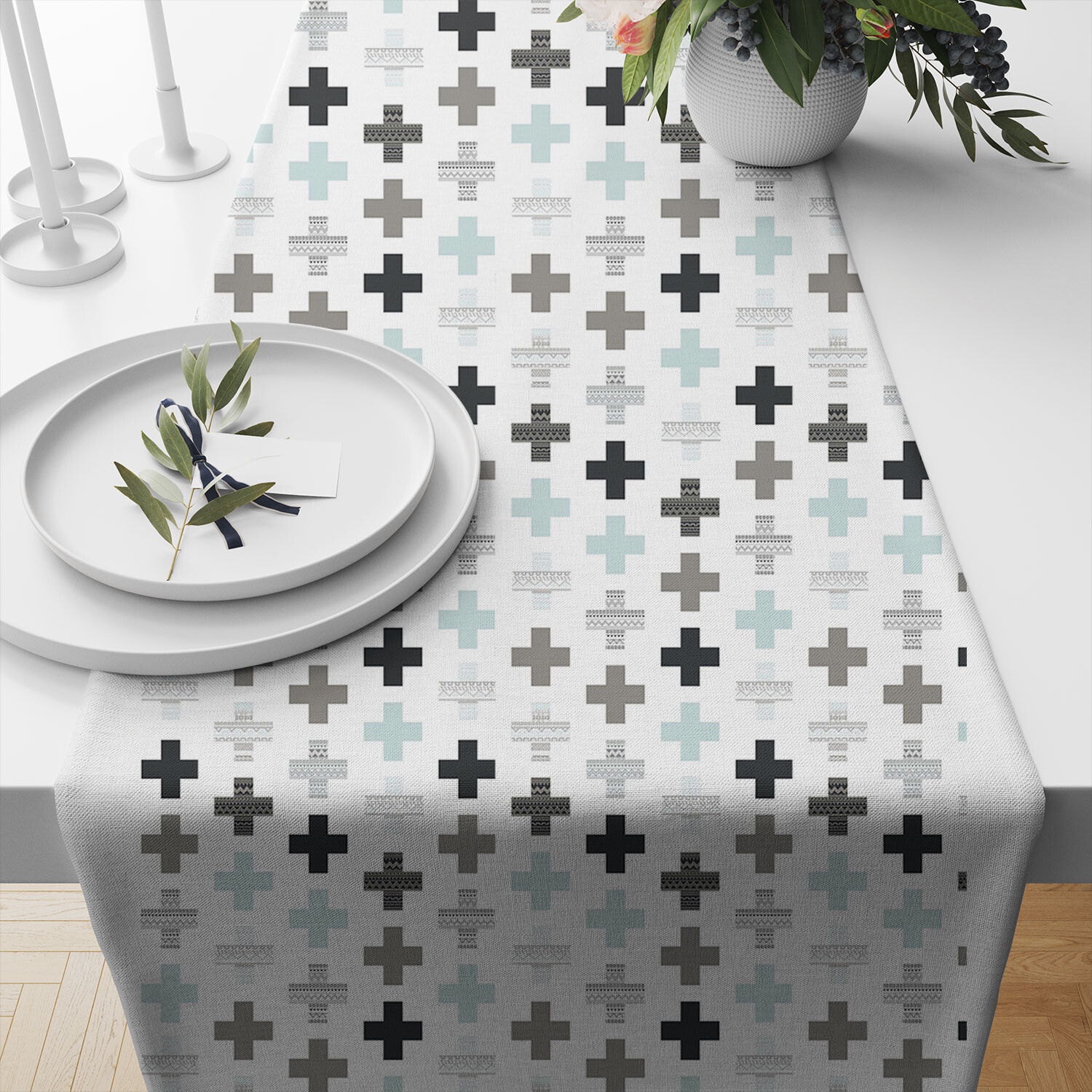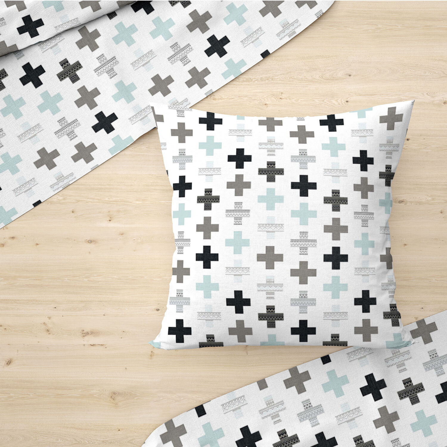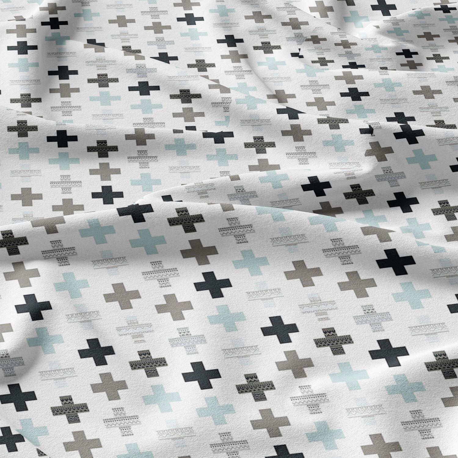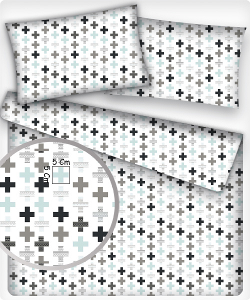 Opis Tkanina bawełniana wzór plusy niebieski na białym tle 5 cm