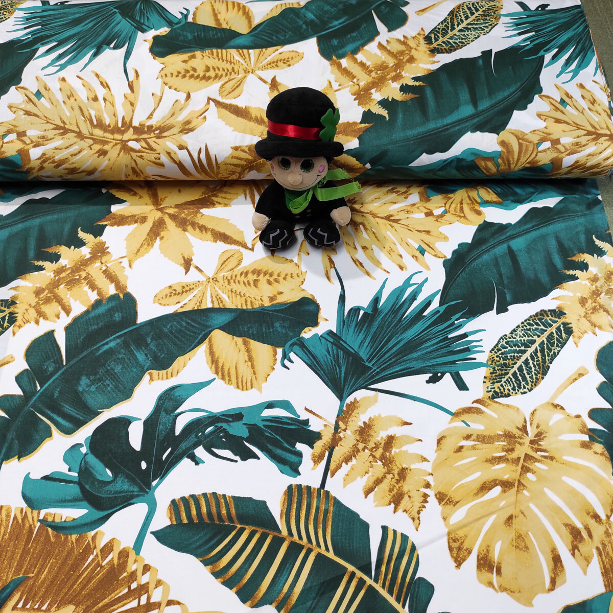Tkanina bawełniana wzór Smaragdowa Monstera na białym tle