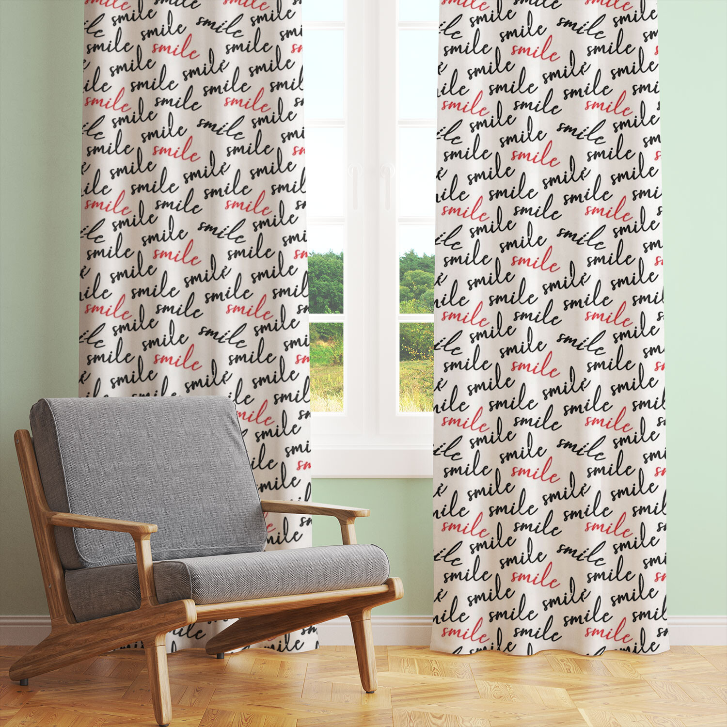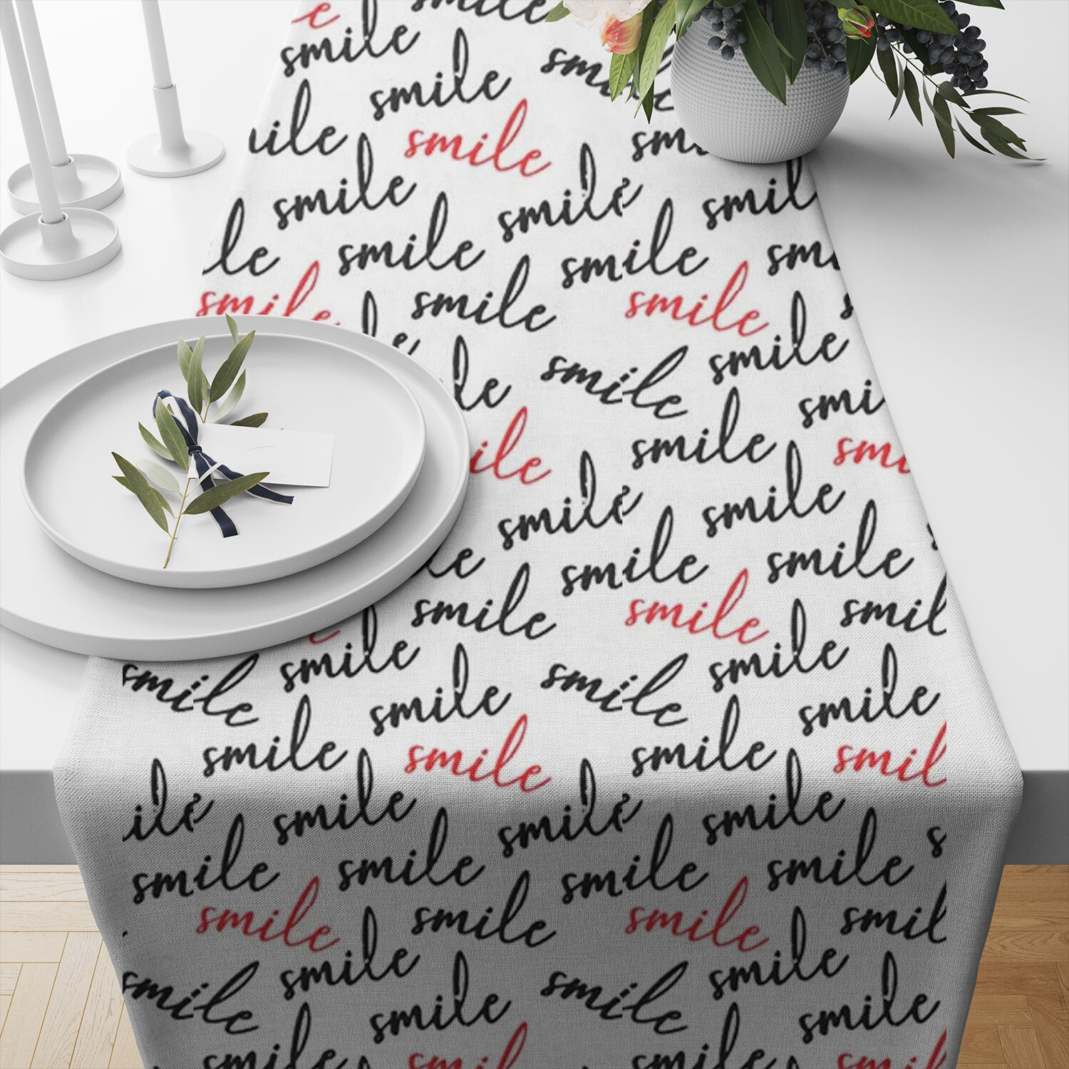 Opis Tkanina bawełniana wzór SMILE na białym tle