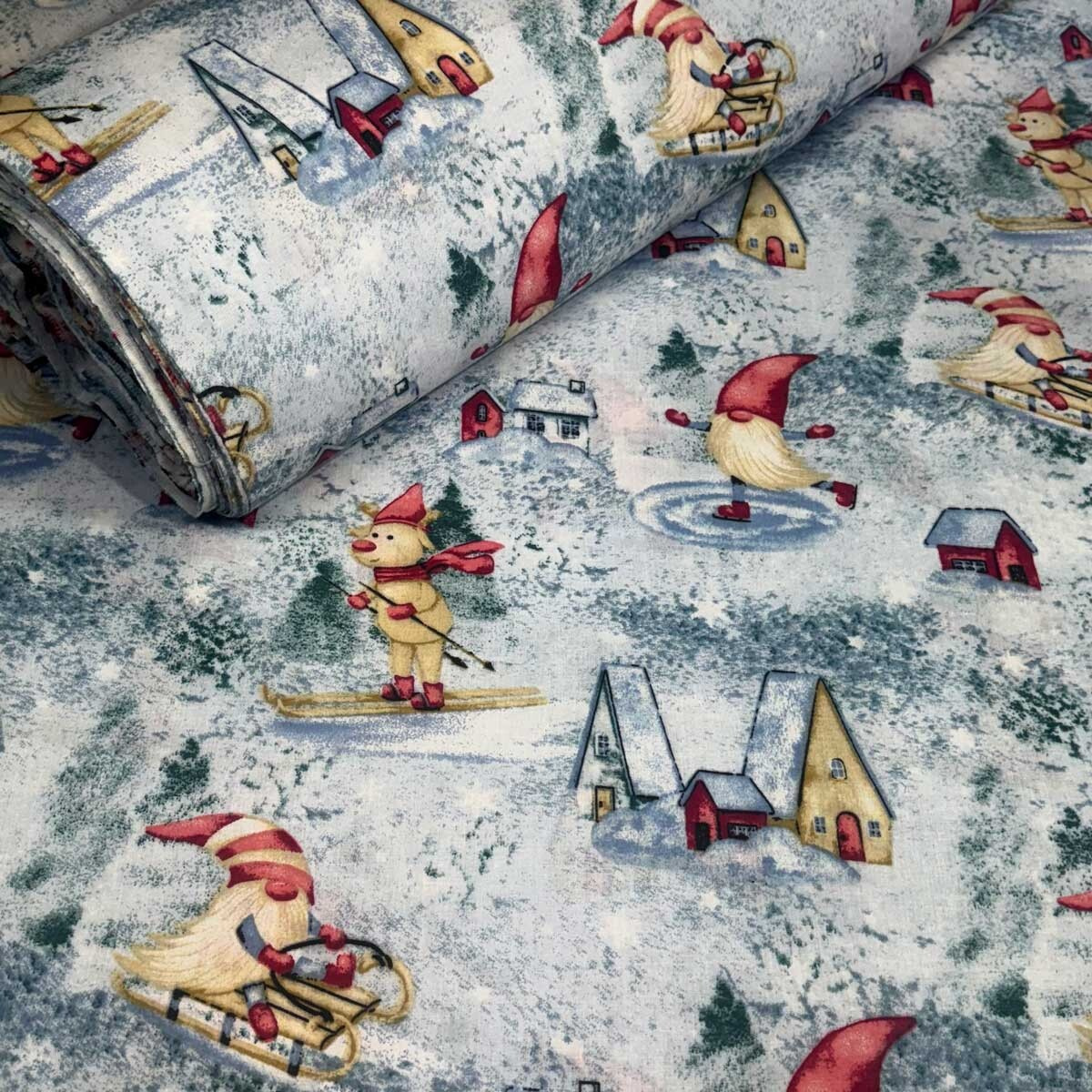 Dekoracyjna tkanina bawełniana z bożonarodzeniowym wzorem stworzy świąteczną radość w domu. Tkanina jest wykonana w 100% z najwyższej jakości bawełny, co zapewnia lekkość i gładkość oraz przyjemną w dotyku.