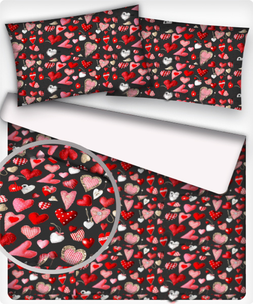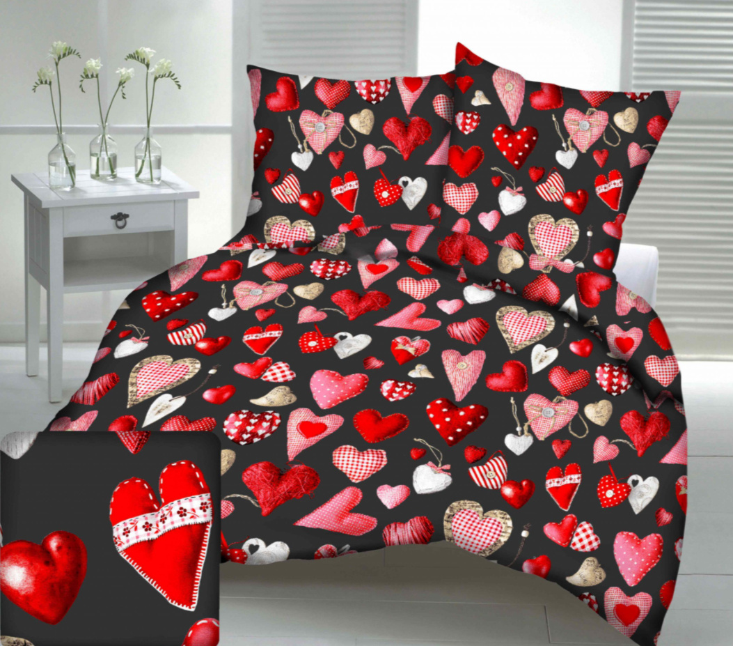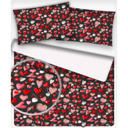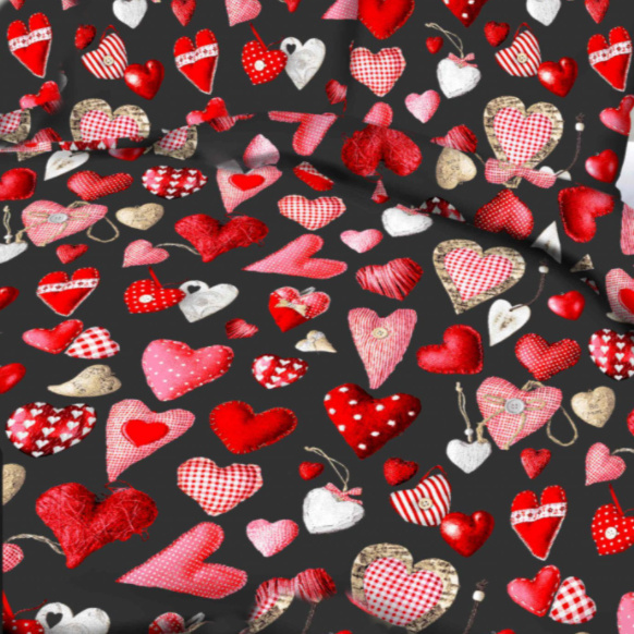 Opis Tkanina bawełniana wzór Walentynki na czarnym tle