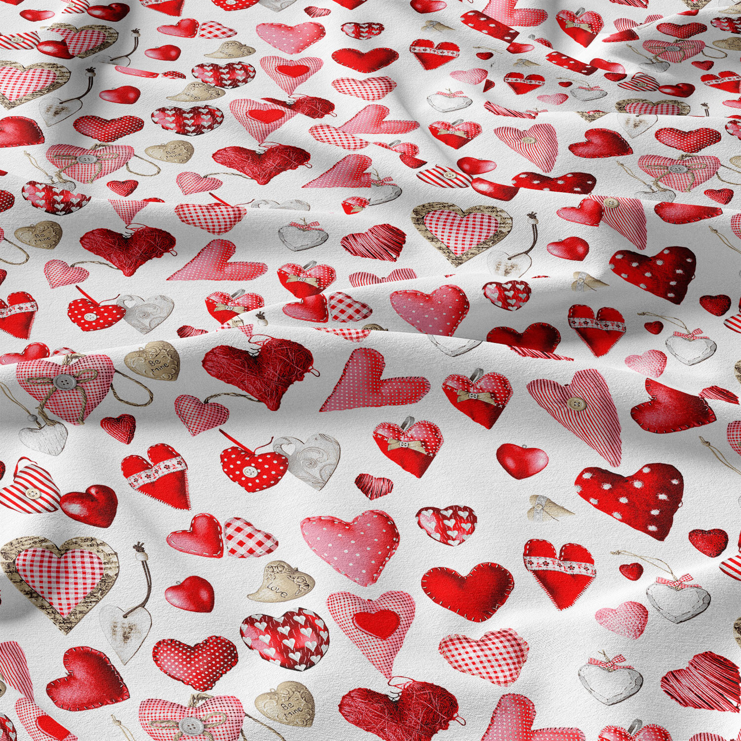 przejrzeć Tkanina bawełniana wzór wielokolorowe serca na białym tle
