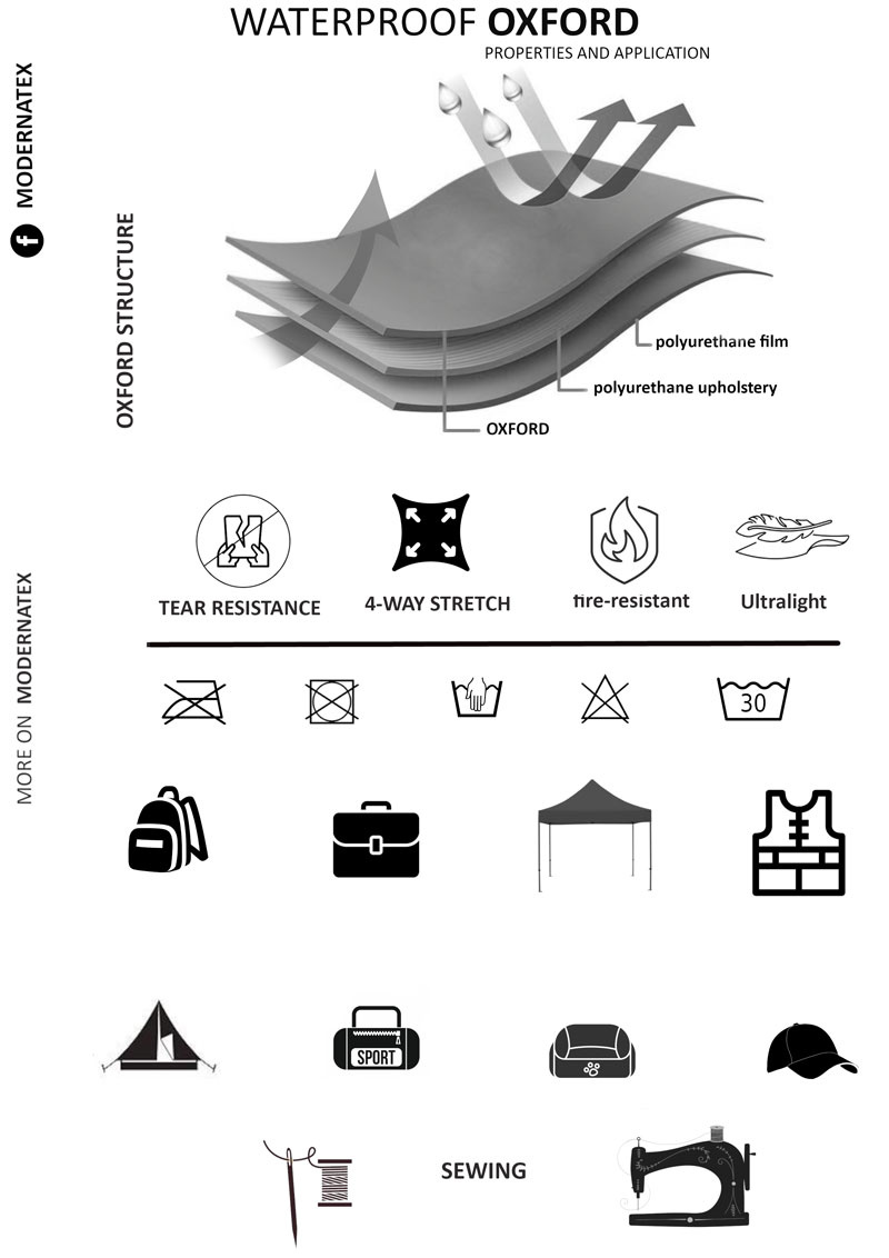 Tkanina Oxford 1680D PU-WR to wyjątkowo trwały materiał poliestrowy z gęsto tkaną strukturą, pokryty z jednej strony bezbarwną powłoką poliuretanową (PU), a z drugiej warstwą hydrofobową WR (Water Repellent). Charakteryzuje się wysoką odpornością na ścieranie, rozciąganie i działanie wilgoci, zachowując przy tym elastyczność i miękkość w dotyku.