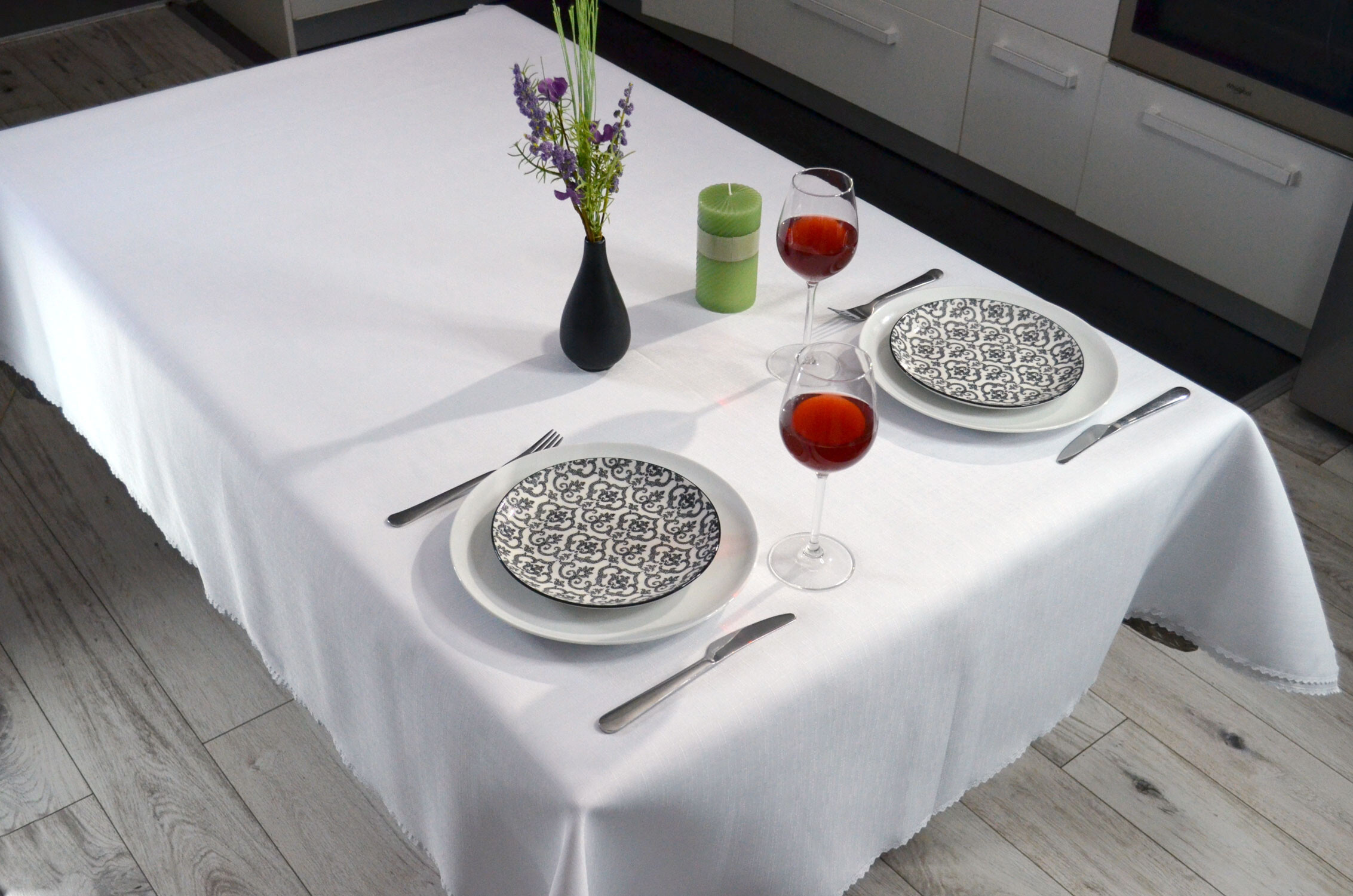 • Uniwersalny design: Klasyczny biały kolor sprawia, że obrus pasuje do każdego wnętrza, dodając mu elegancji i świeżości. Jest to doskonały wybór zarówno na formalne okazje, jak i codzienne posiłki.
